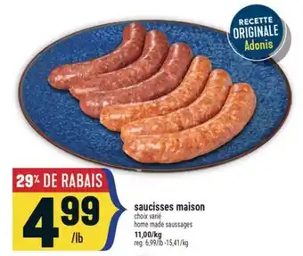 Marché Adonis offers a wide collection of products, besides the Saucisses maison | home made saussages. Keep an eye on the weekly Marché Adonis flyer to find the best offers and promotions. Besides Saucisses maison | home made saussages, you can also find the following offers: SAUCISSES FUMÉES, SAUCISSES FUMÉES & SAUCISSES DALISA.