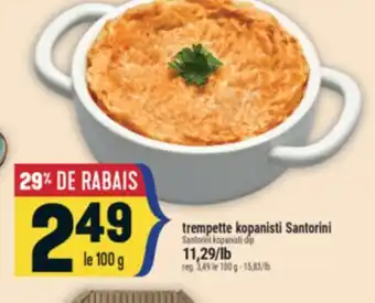 The price of Trempette kopanisti Santorini |Santorini kopanisti dip can be found at the top of the page, together with the dates during which the offer is available. You can also check the price in the current Marché Adonis flyer or on the Marché Adonis website. Promotional offers assure you of buying Marché Adonis products at the lowest price.