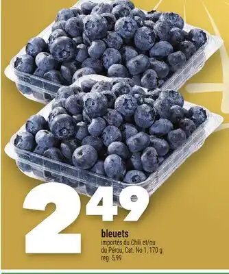 This promotion is available in various stores, view all products to get the cheapest BLEUETS. If you'd like to find out whether this product has a bigger discount in another store, check the category 'Grocery'. You may also find these offers interesting: BLEUETS, Bleuets Pérou & BLEUETS | BLUEBERRIES.