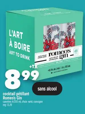 This promotion is available in various stores, view all products to get the cheapest Cocktail pétillant Romeo's Gin. If you'd like to find out whether this product has a bigger discount in another store, check the category 'Grocery'. You may also find these offers interesting: COCKTAIL AUX LÉGUMES GARDEN COCKTAIL | GARDEN COCKTAIL VEGETABLE COCKTAIL, BOCCONCINI COCKTAIL IRRÉSISTIBLE | IRRÉSISTIBLE BOCCONCINI COCKTAIL & COCKTAIL CLAMATO MOTT'S | MOTT'S CLAMATO COCKTAIL.