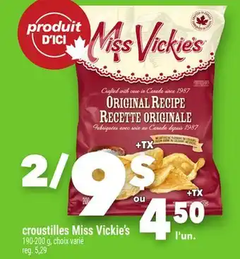 This promotion is available in various stores, view all products to get the cheapest Croustilles MissVickie's. If you'd like to find out whether this product has a bigger discount in another store, check the category 'Grocery'. You may also find these offers interesting: CROUSTILLES, 40'S, CROUSTILLES RUFFLES & CROUSTILLES LAY'S.