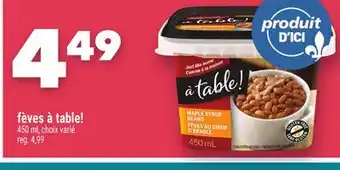 Marche Ami offers a wide collection of products, besides the Fèves à table!. Keep an eye on the weekly Marche Ami flyer to find the best offers and promotions. Besides Fèves à table!, you can also find the following offers: FÈVES AU LARD CLARK | CLARK PORK AND BEANS, fèves au lard Clark | Clark pork'n beans & À TABLE! BEANS.