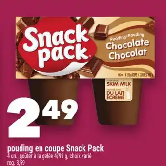This promotion is available in various stores, view all products to get the cheapest Pouding en coupe Snack Pack. If you'd like to find out whether this product has a bigger discount in another store, check the category 'Grocery'. You may also find these offers interesting: POUDING SNACK PACK, 4x99 g, POUDING EN COUPE SELECTION | SELECTION PUDDING CUP & FRUITS EN COUPE SELECTION.