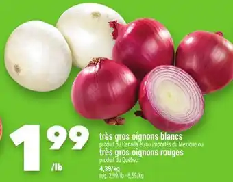 This promotion is available in various stores, view all products to get the cheapest Très gros oignons blancs. If you'd like to find out whether this product has a bigger discount in another store, check the category 'Grocery'. You may also find these offers interesting: TRÈS GROS OIGNONS ROUGES | JUMBO RED ONIONS, Oeufs blancs confort calibre gros & Gros œufs blancs Sélect Nutri.