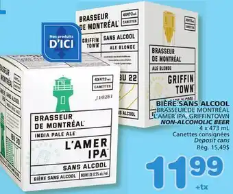 BRASSEUR DE MONTRÉAL L'AMER IPA, GRIFFINTOWN NON-ALCOHOLIC BEER promotion at Marché Bonichoix