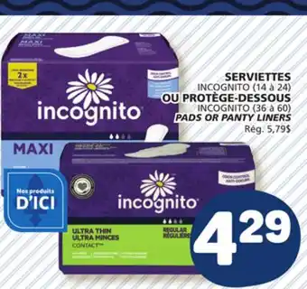 This INCOGNITO PADS (14 to 24) OR PANTY LINERS (36 to 60) is now on sale at Marché Bonichoix. Check the current selection filled with great deals and discounts. Purchase INCOGNITO PADS (14 to 24) OR PANTY LINERS (36 to 60) online via Marché Bonichoix website or get it at the best available price in person. Flyerdeals.ca gathers the best INCOGNITO PADS (14 to 24) OR PANTY LINERS (36 to 60) promotions for you. Click on the bell icon to receive a free notification when this product is on sale again.INCOGNITO PADS (14 to 24) OR PANTY LINERS (36 to 60) promotions for next week