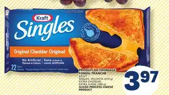 KRAFT SINGLES, VELVEETA (410 g) EXTRA CHEDDAR, EXTRA SUISSE (390 g) SLICED PROCESS CHEESE PRODUCT promotion at Marché Bonichoix