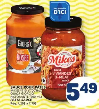 MIKES (410 à 700 mL) OR GIORGIO RISTORANTE (900 mL) PASTA SAUCE discount at Marché Bonichoix