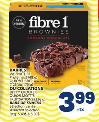 VAL NATURE OR FIBRE 1 (125 or 175 g) BETTY CROCKER OR MOTT'S FRUITSATIONS (226 g) BARS OR SNACKS offer at Marché Bonichoix