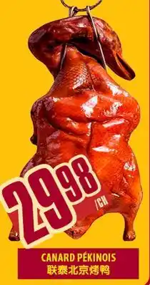 This CANARD PÉKINOIS is now on sale at Marché Lian Tai. Check the current selection filled with great deals and discounts. Purchase CANARD PÉKINOIS online via Marché Lian Tai website or get it at the best available price in person. Flyerdeals.ca gathers the best CANARD PÉKINOIS promotions for you. Click on the bell icon to receive a free notification when this product is on sale again.CANARD PÉKINOIS promotions for next week