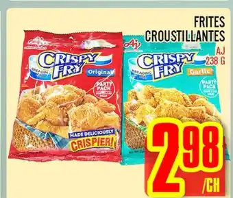 This promotion is available in various stores, view all products to get the cheapest FRITES CROUSTILLANTES. If you'd like to find out whether this product has a bigger discount in another store, check the category 'Grocery'. You may also find these offers interesting: FRITES SUPERFRIES MCCAIN, SUNFUNG SHODOISLAND Cacahuètes Croustillantes Sélectionnées & FRITES LES FERMES CAVENDISH.