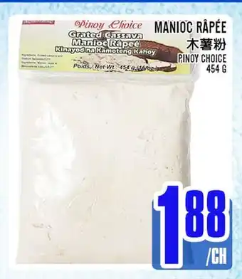 This MANIOC RAPÉE is currently on sale at Marché Lian Tai. All details regarding the current price, offer conditions, and validity period can be found on this page. You can also explore other similar deals and promotions related to MANIOC RAPÉE to make the most cost-effective choice.