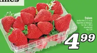 This promotion is available in various stores, view all products to get the cheapest Fraises | Strawberries. If you'd like to find out whether this product has a bigger discount in another store, check the category 'Grocery'. You may also find these offers interesting: FRAISES | STRAWBERRIES, fraises | strawberries & FRAISES.