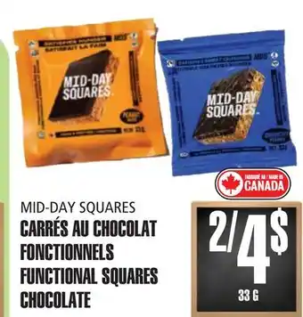 This promotion is available in various stores, view all products to get the cheapest MID - DAY SQUARES CARRÉS AU CHOCOLAT FONCTIONNELS. If you'd like to find out whether this product has a bigger discount in another store, check the category 'Grocery'. You may also find these offers interesting: MID-DAY SQUARES PLANT-BASED SUPERFOOD SQUARES, MID-DAY SQUARES (33 g) FRANKIES (113 to 140 g) PUFFS OR PLANT-BASED PROTEIN SQUARES & LAIT AU CHOCOLAT.