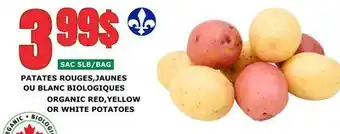 This promotion is available in various stores, view all products to get the cheapest PATATES ROUGES JAUNES OU BLANC BIOLOGIQUES. If you'd like to find out whether this product has a bigger discount in another store, check the category 'Grocery'. You may also find these offers interesting: POIVRONS ROUGES, JAUNES OU ORANGE, OIGNONS ROUGES, JAUNES OU ESPAGNOLS & POIVRONS JAUNES, ORANGE OU ROUGES BIOLOGIQUES | Organic Yellow, Orange or Red Peppers.