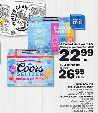 Now on sale at Marches Tradition: BEACH DAY SMASH, WHITE CLAW OR COORS SELTZER ALCOHOLIC MALT BEVERAGE ✅ Valid from 29-01 to 4-02.