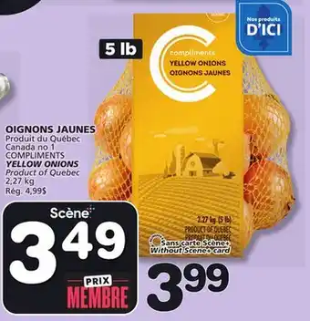 This promotion is available in various stores, view all products to get the cheapest COMPLIMENTS YELLOW ONIONS. If you'd like to find out whether this product has a bigger discount in another store, check the category 'Grocery'. You may also find these offers interesting: Compliments Carrots or Yellow Onions 3 lb Bag Product of Ontario, Canada No. 1, Yellow onions & Yellow onions.
