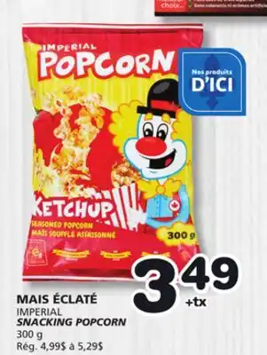 This IMPERIAL SNACKING POPCORN is now on sale at Marches Tradition. Check the current selection filled with great deals and discounts. Purchase IMPERIAL SNACKING POPCORN online via Marches Tradition website or get it at the best available price in person. Flyerdeals.ca gathers the best IMPERIAL SNACKING POPCORN promotions for you. Click on the bell icon to receive a free notification when this product is on sale again.IMPERIAL SNACKING POPCORN promotions for next week