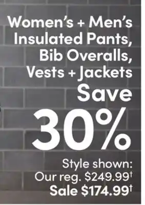 Women's + Men's Insulated Pants, Bib Overalls, Vests + Jackets promotion at Mark's