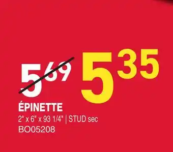 The price of ÉPINETTE 2 x 6 x 93 1/4 can be found at the top of the page, together with the dates during which the offer is available. You can also check the price in the current flyer or on the Matério website. Promotional offers assure you of buying Matério products at the lowest price.
