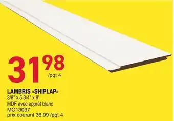 This promotion is available in various stores, view all products to get the cheapest LAMBRIS SHIPLAP. If you'd like to find out whether this product has a bigger discount in another store, check the category 'DIY'. You may also find these offers interesting: ALEXANDRIA MOULDING 1/2 x 7-5/16 x 96 Fibreboard Shiplap Paneling, offer 2 & offer 3.