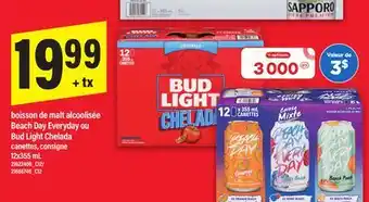 BOISSON DE MALT ALCOOLISÉE BEACH DAY EVERYDAY OU BUD LIGHT CHELADA, 12x355 mL offer at Maxi