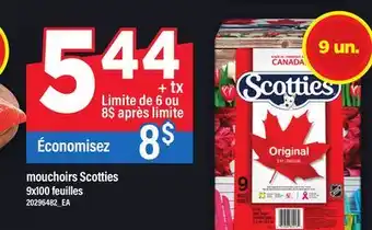 Maxi offers a wide collection of products, besides the MOUCHOIRS SCOTTIES, 9X100 FEUILLES. Keep an eye on the weekly Maxi flyer to find the best offers and promotions. Besides MOUCHOIRS SCOTTIES, 9X100 FEUILLES, you can also find the following offers: papiers mouchoirs Scotties, SCOTTIES Papiers mouchoirs sélectionnés & PAPIERS MOUCHOIRS SCOTTIES | SCOTTIES FACIAL TISSUES.