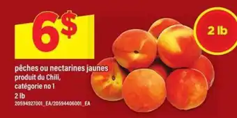This promotion is available in various stores, view all products to get the cheapest pêches ou nectarines jaunes. If you'd like to find out whether this product has a bigger discount in another store, check the category 'Grocery'. You may also find these offers interesting: pêches ou nectarines jaunes, PÊCHES OU NECTARINES JAUNES, 2 lb & PÊCHES OU NECTARINES JAUNES | YELLOW PEACHES OR NECTARINES.