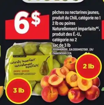 This promotion is available in various stores, view all products to get the cheapest pêches ou nectarines jaunes / poires Naturellement imparfaits. If you'd like to find out whether this product has a bigger discount in another store, check the category 'Grocery'. You may also find these offers interesting: PÊCHES OU NECTARINES JAUNES, 2 LB OU POIRES NATURELLEMENT IMPARFAITS, sac de 3 lb, pêches ou nectarines & pêches ou nectarines | peaches or nectarines.