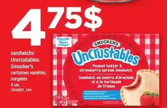 Maxi offers a wide collection of products, besides the SANDWICHS SMUCKER'S, 4 UN. Keep an eye on the weekly Maxi flyer to find the best offers and promotions. Besides SANDWICHS SMUCKER'S, 4 UN, you can also find the following offers: Smucker's uncrustables, Sandwichs assortis & SMUCKER'S Uncrustables.