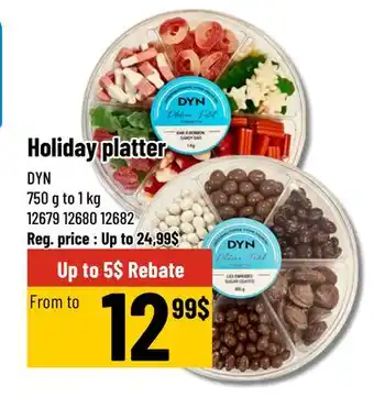 Many people prepare their shopping list in advance, using the latest deals and promotions. Flyerdeals.ca is among the first to share next week’s promotions, so you know whether to wait before making a purchase or buy right away at the best price. Our team updates all Holiday platter DYN promotions quickly, allowing you to plan with both this week’s and next week’s offers. Some promotions are only available during specific dates or online.Frequently asked questions about Holiday platter DYN