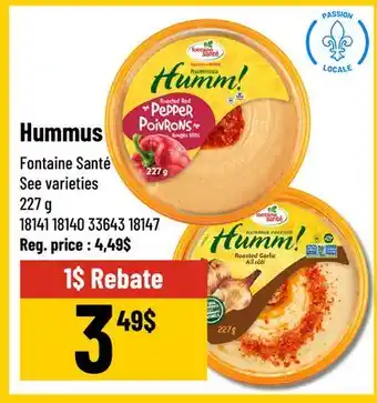 This promotion is available in various stores, view all products to get the cheapest Hummus Fontaine Santé. If you'd like to find out whether this product has a bigger discount in another store, check the category 'Grocery'. You may also find these offers interesting: HUMMUS FONTAINE SANTÉ | FONTAINE SANTÉ HUMMUS, FONTAINE SANTÉ HUMMUS & Fontaine Santé hummus.