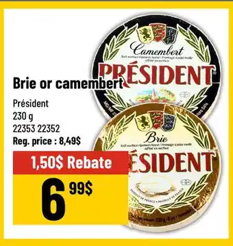 The price of Président Brie or camembert can be found at the top of the page, together with the dates during which the offer is available. You can also check the price in the current Mayrand flyer or on the Mayrand website. Promotional offers assure you of buying Mayrand products at the lowest price.