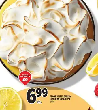 The price of FRONT STREET BAKERY LEMON MERINGUE PIE can be found at the top of the page, together with the dates during which the offer is available. You can also check the price in the current Metro flyer or on the Metro website. Promotional offers assure you of buying Metro products at the lowest price.