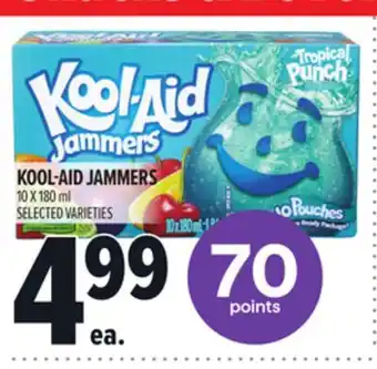 This promotion is available in various stores, view all products to get the cheapest KOOL-AID JAMMERS. If you'd like to find out whether this product has a bigger discount in another store, check the category 'Grocery'. You may also find these offers interesting: Kool-Aid Jammers or Mio, Crystal Light or Kool-Aid Liquid Water Enhancers, KOOL-AID JAMMERS 10x180 mL or MiO, CRYSTAL LIGHT or KOOL-AID LIQUID WATER ENHANCERS 48 mL & CHOLESTER-AID ALTERRA.