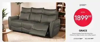 This promotion is available in various stores, view all products to get the cheapest Grace - Genuine Leather Power Reclining Sofa with 3-Motor Power (Head, Foot, Lumbar). If you'd like to find out whether this product has a bigger discount in another store, check the category 'Home and Furniture'. You may also find these offers interesting: Chateau dAx Angelo 84.25 Genuine Leather Power Reclining Sofa with Power Headrests - Grey, Chateau dAx Angelo 84.25 Genuine Leather Power Reclining Sofa with Power Headrests - Grey & Scott Living Prescott 88.5 Genuine Leather Power Reclining Sofa with Power Headrests - Grey.