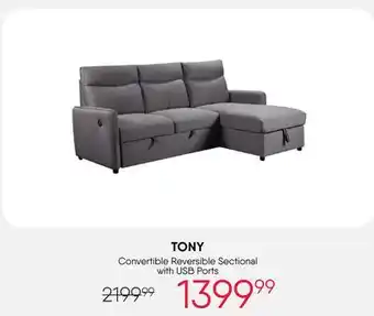 Meubles RD offers a wide collection of products, besides the Tony - Reversible Sectional-Bed with USB Ports. Keep an eye on the weekly Meubles RD flyer to find the best offers and promotions. Besides Tony - Reversible Sectional-Bed with USB Ports, you can also find the following offers: JUNEAU Sectional sofa bed with reversible storage, Montreal - Sectional with Reversible Chaise - Grey & AMMI Sectional Sofa Bed.