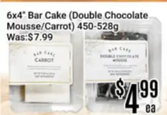 This 6x4 Bar Cake (Double Chocolate Mousse/Carrot) is now on sale at Nations Fresh Foods. Check the current selection filled with great deals and discounts. Purchase 6x4 Bar Cake (Double Chocolate Mousse/Carrot) online via Nations Fresh Foods website or get it at the best available price in person. Flyerdeals.ca gathers the best 6x4 Bar Cake (Double Chocolate Mousse/Carrot) promotions for you. Click on the bell icon to receive a free notification when this product is on sale again.6x4 Bar Cake (Double Chocolate Mousse/Carrot) promotions for next week