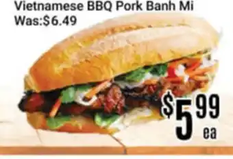 This promotion is available in various stores, view all products to get the cheapest Vietnamese BBQ Pork Banh Mi. If you'd like to find out whether this product has a bigger discount in another store, check the category 'Grocery'. You may also find these offers interesting: BANH MI VIETNAMESE CHICKEN SANDWICH, BBQ Pork & Honey BBQ Pork.