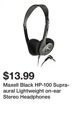 This Maxell Black HP-100 Supra-aural Lightweight on-ear Stereo Headphones is currently on sale at Newegg. All details regarding the current price, offer conditions, and validity period can be found on this page. You can also explore other similar deals and promotions related to Maxell Black HP-100 Supra-aural Lightweight on-ear Stereo Headphones to make the most cost-effective choice.
