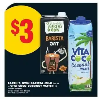 EARTH'S OWN BARISTA MILK or VITA COCO COCONUT WATER promotion at No Frills