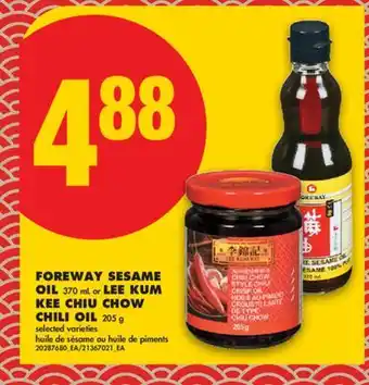 FOREWAY SESAME OIL 370 mL or LEE KUM KEE CHIU CHOW CHILI OIL 205 g promotion at No Frills