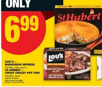 LOU'S OR MANDARIN ENTRÉES 375-450 G, FULLY COOKED OR ST-HUBERT OR SWISS CHALET POT PIES 650-800 G offers and online promotions
