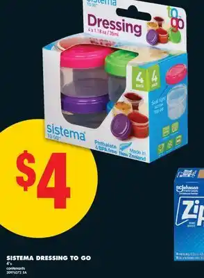 This promotion is available in various stores, view all products to get the cheapest SISTEMA DRESSING TO GO, 4's. If you'd like to find out whether this product has a bigger discount in another store, check the category 'Grocery'. You may also find these offers interesting: Sistema To-Go 18-Pc Set, Sistema Small Split To Go & SISTEMA SANDWICH BOX.