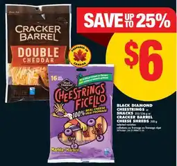 BLACK DIAMOND CHEESTRINGS or SNACKS 252/336 g or CRACKER BARREL CHEESE SHREDS 320 g
