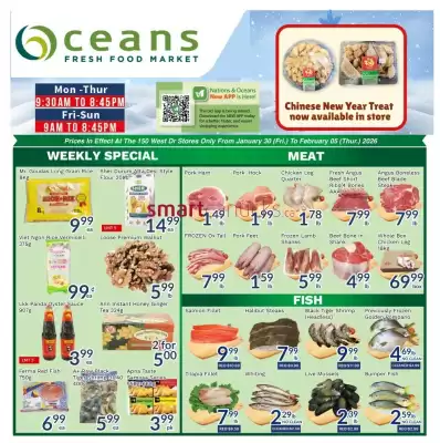You can find this week’s latest Oceans Fresh Food Market Flyer at the top of this page. This Oceans Fresh Food Market flyer, valid from 30-01-2026 to 05-02-2026, shows the complete overview of the current promotional flyers from Oceans Fresh Food Market. Here you can see how many pages the flyer contains and how long it will remain valid. The information has been verified by Oceans Fresh Food Market and applies to stores in Brampton, Mississauga and City 3.
