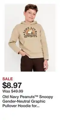 Old Navy Peanuts Snoopy Gender-Neutral Graphic Pullover Hoodie for Kids offers and online promotions