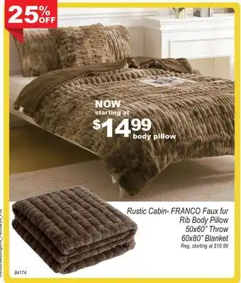 Now on sale at Oxford Mills: Rustic Cabin-FRANCO Faux fur Rib Body Pillow ✅ Valid from 4-02 to 3-03.