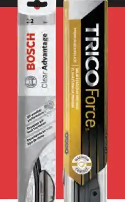 This promotion is available in various stores, view all products to get the cheapest Trico Force or Bosch Clear Advantage Wiper Blades. If you'd like to find out whether this product has a bigger discount in another store, check the category 'Automotive'. You may also find these offers interesting: All-Season Wiper Blades, 20 in. All-Season Wiper Blades & Bosch.