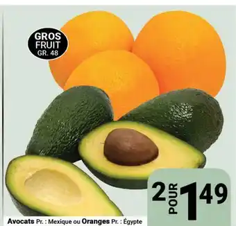 Avocats Pr. : Mexique ou Oranges Pr. : Egypte